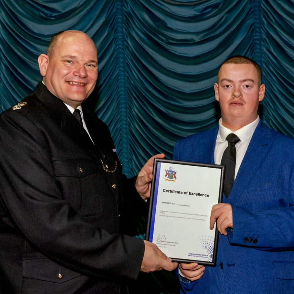 We are proud to announce that Lewis Johnson was presented with a Certificate of Excellence for going above and beyond expectation by the Thames Valley Police. This award commended his bravery and instincts that led him to save a life.